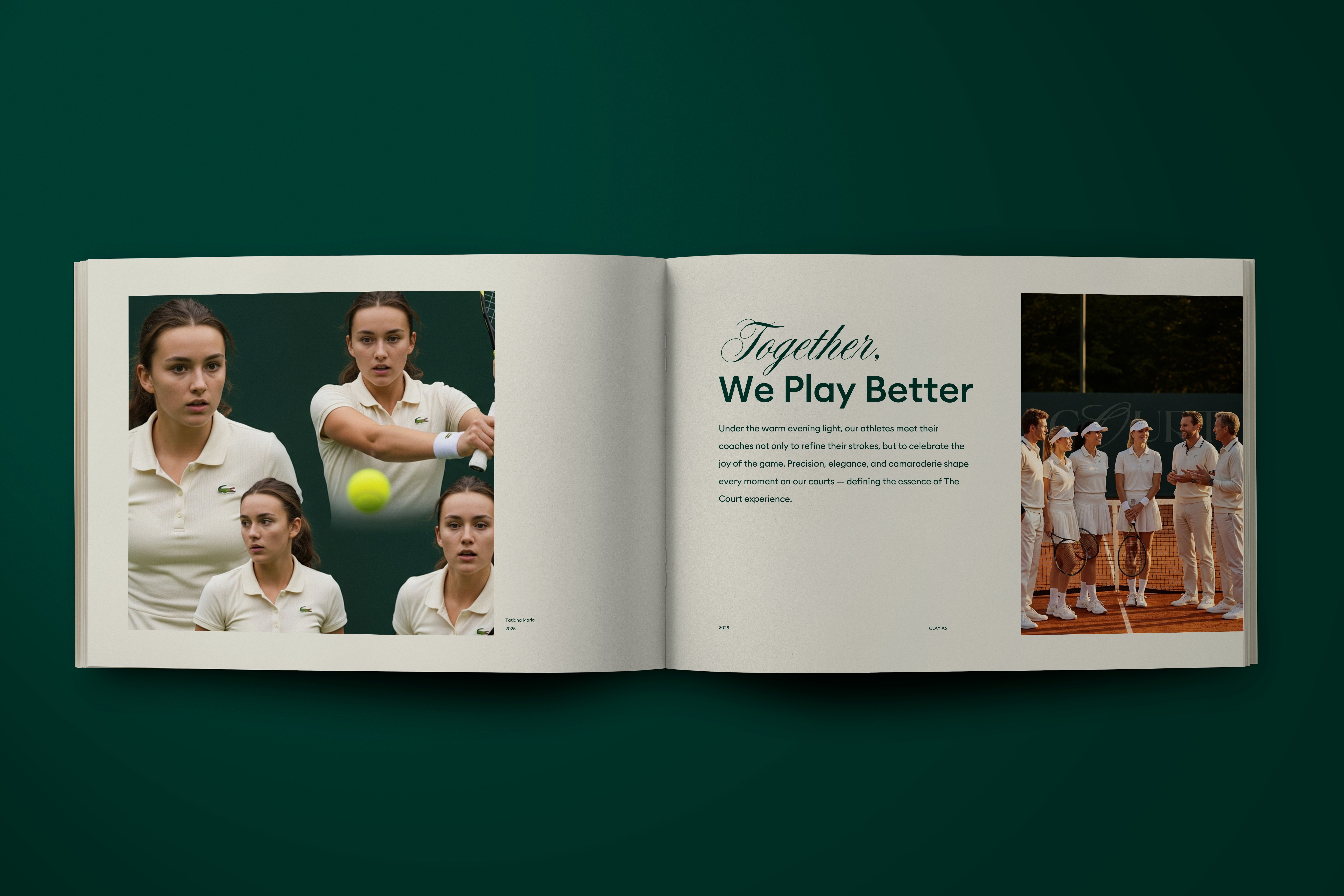 This starter pack defines how The Court Tennis Club appears, speaks and behaves across all touchpoints. Built around the rituals of play, recovery and focus, the identity blends classic tennis codes with a contemporary, hotel-level sense of comfort. Inside this deck are the key components required for launch: master logo versions and seal, court-based layouts, photography mood, color hierarchy and sample applications for print, digital and environmental media. Each decision is documented with usage examples so that designers, marketers and partners can activate the brand with confidence. The system is intentionally flexible, yet tight enough to protect recognition over time.